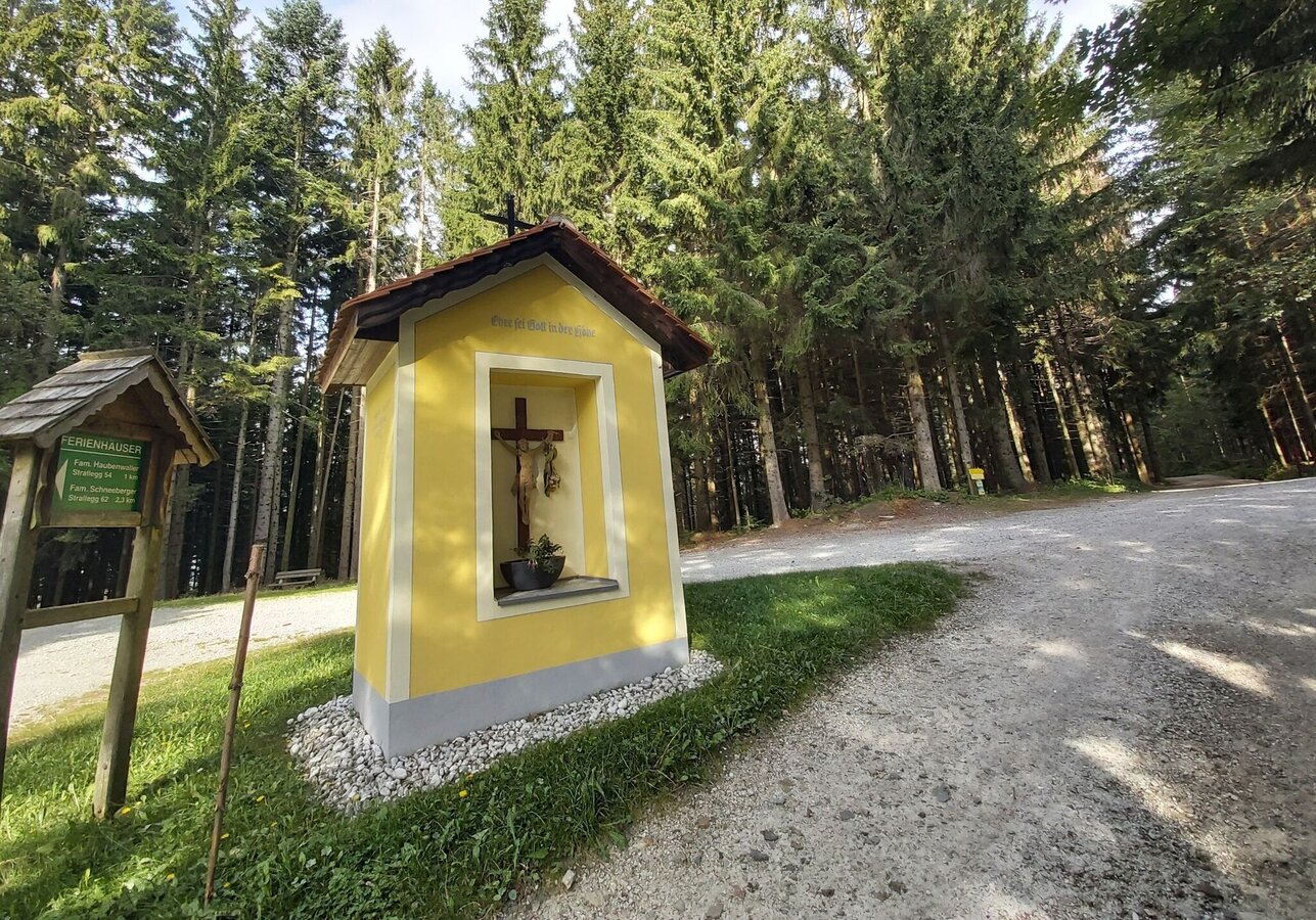 - Der Sonnenweg verläuft weiter entlang des Güterweges bis zu einer markanten Kreuzung