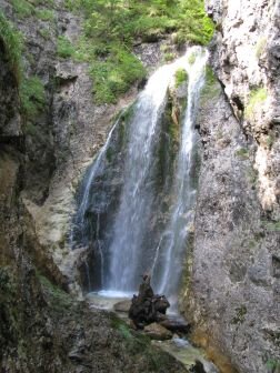 For this quite strenuous hike we start at the above-mentioned parking lot at the Brunnalm. At its northeastern corner begins the steep ascent to the Eiblwiese and further to the Weitzerjagdhütte. Keeping to the right, the path is initially flat and then becomes steeper and steeper on a narrow path through the Goassteign' to the high plateau. Here we follow the now well-marked trail to the Meranhaus and descend via the Schallerrinne.